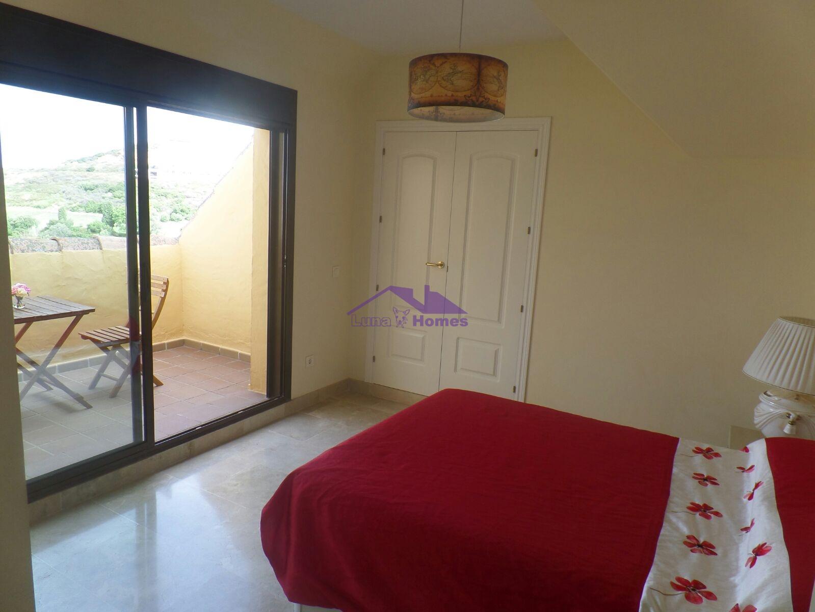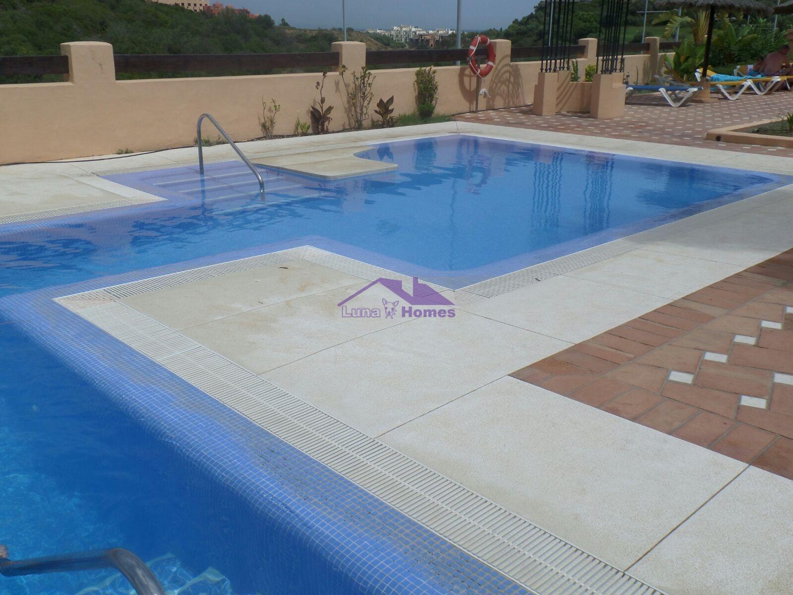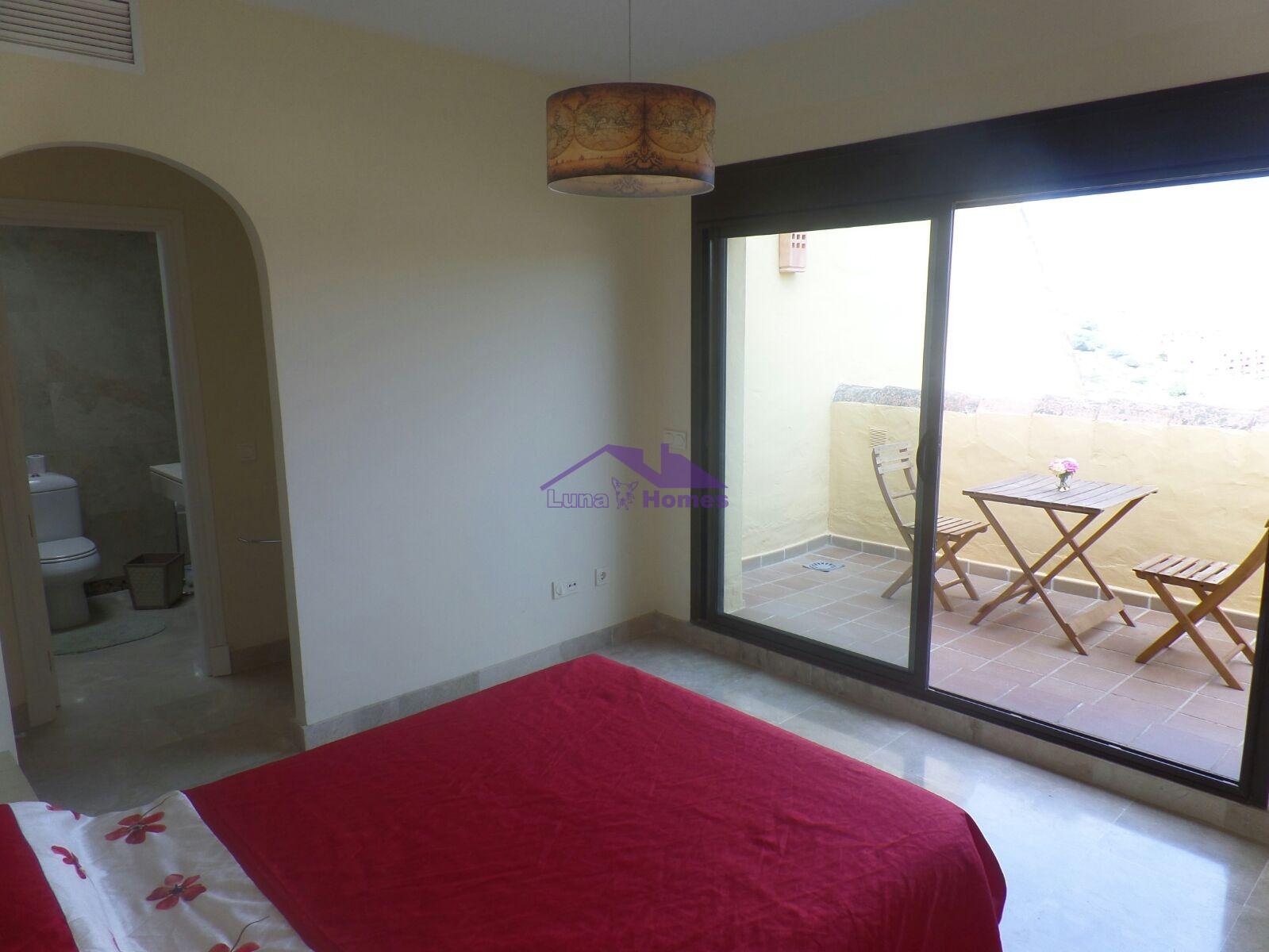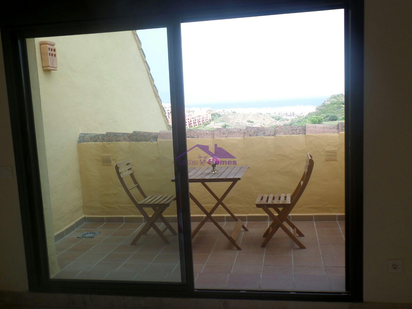Ático cercano a la playa y al campo de golf. Con unas vistas increíbles. Cuenta con una habitación doble y una suite, baño y dos estupendas y amplias terrazas. Zona residencial con jardines y piscina. Se vende con garaje y trastero.