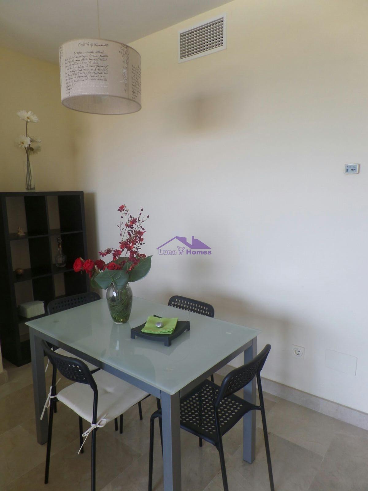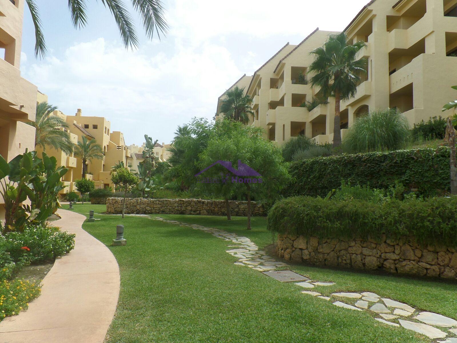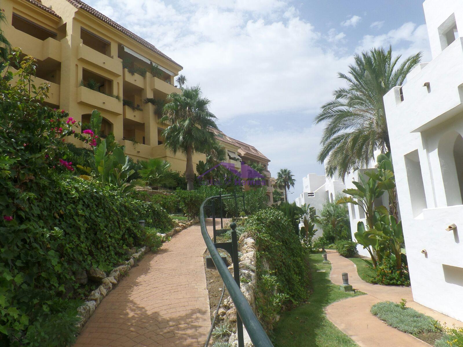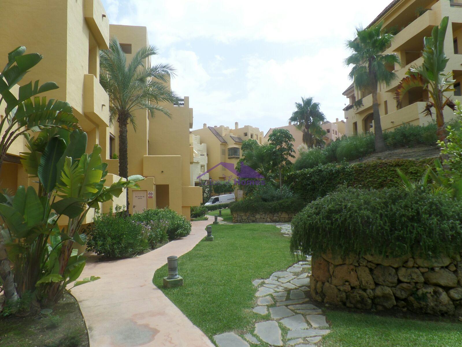 Ático cercano a la playa y al campo de golf. Con unas vistas increíbles. Cuenta con una habitación doble y una suite, baño y dos estupendas y amplias terrazas. Zona residencial con jardines y piscina. Se vende con garaje y trastero.