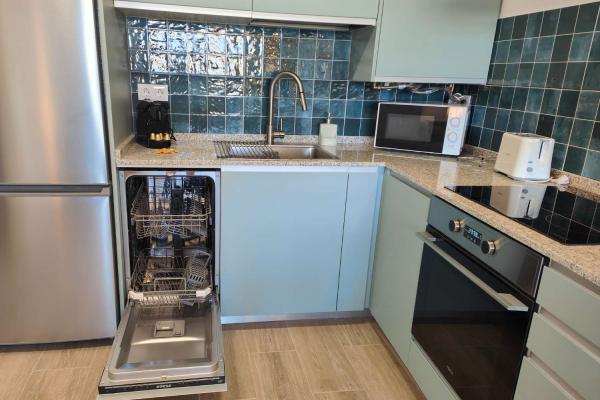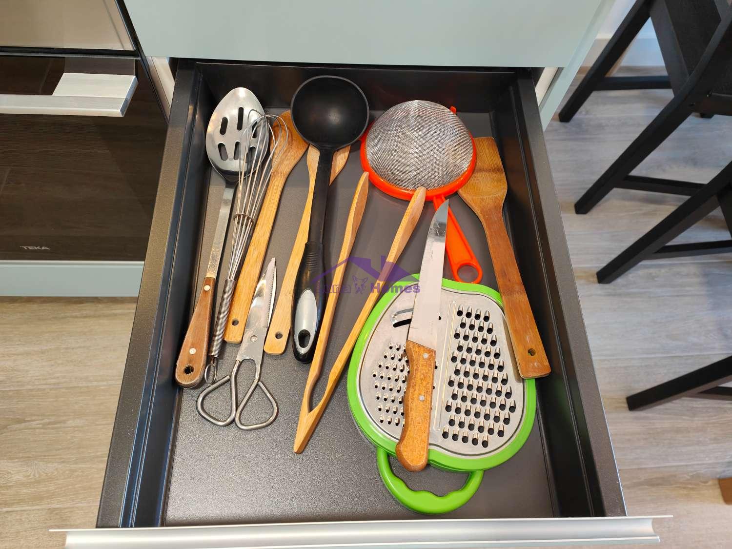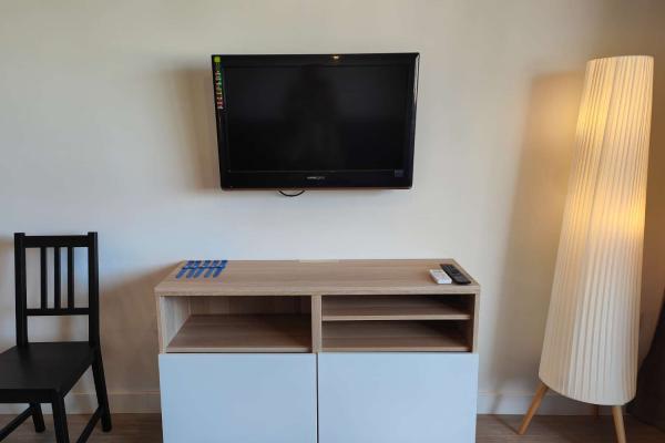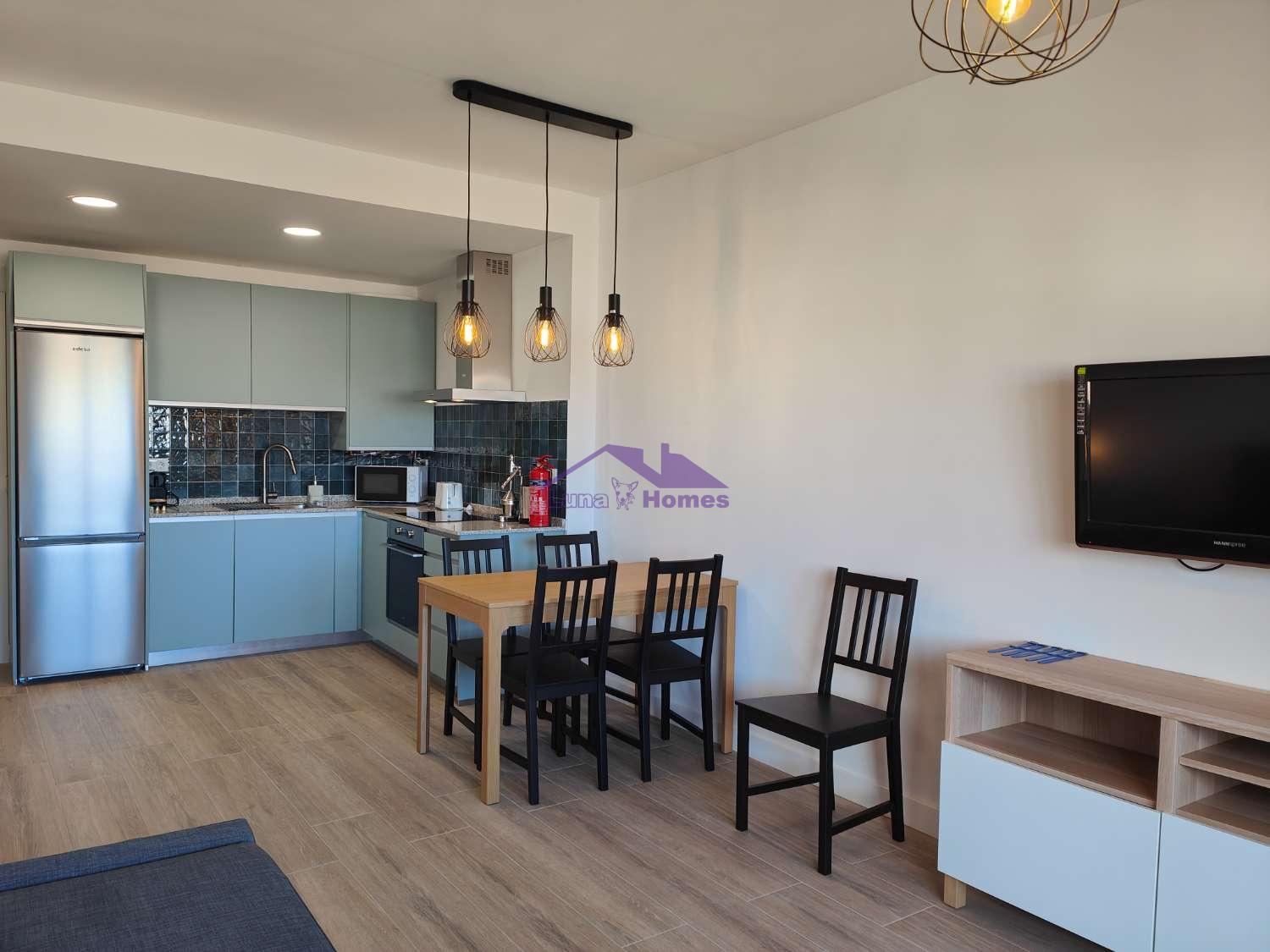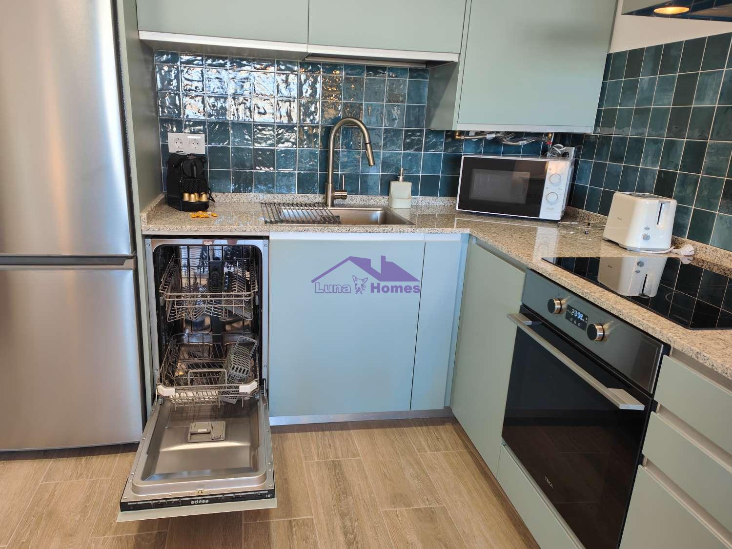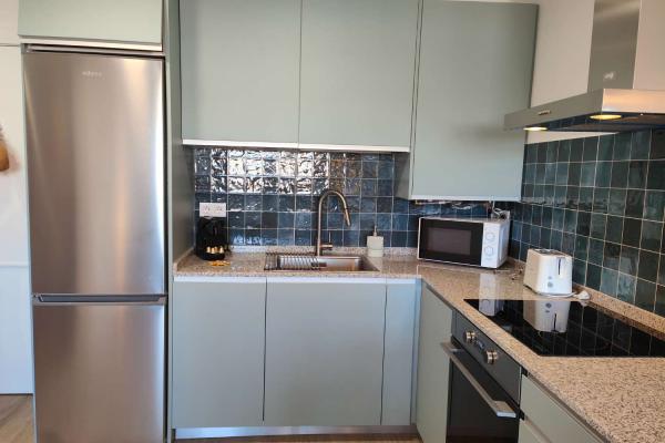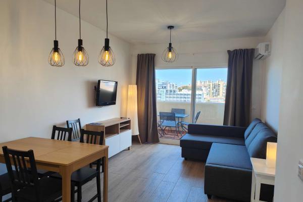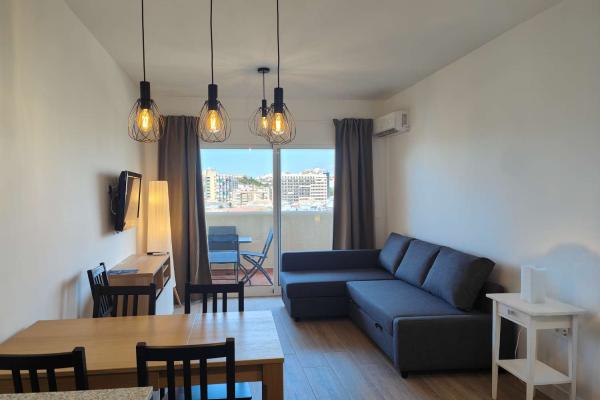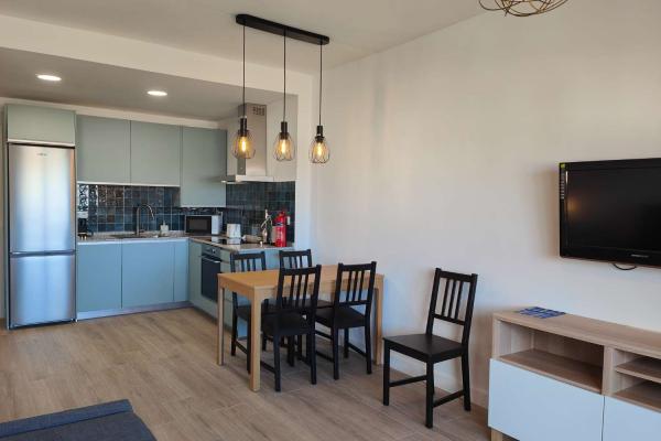 El apartamento de 1 dormitorio es un espacio acogedor y funcional que cuenta con una cómoda cama de matrimonio y una cama adicional de 90cm en la habitación. El salón comedor, integrado con una cocina americana totalmente equipada, ofrece un ambiente luminoso y moderno donde relajarse y disfrutar en compañía. El sofá cama brinda una opción adicional para alojar a dos huéspedes extra si es necesario.