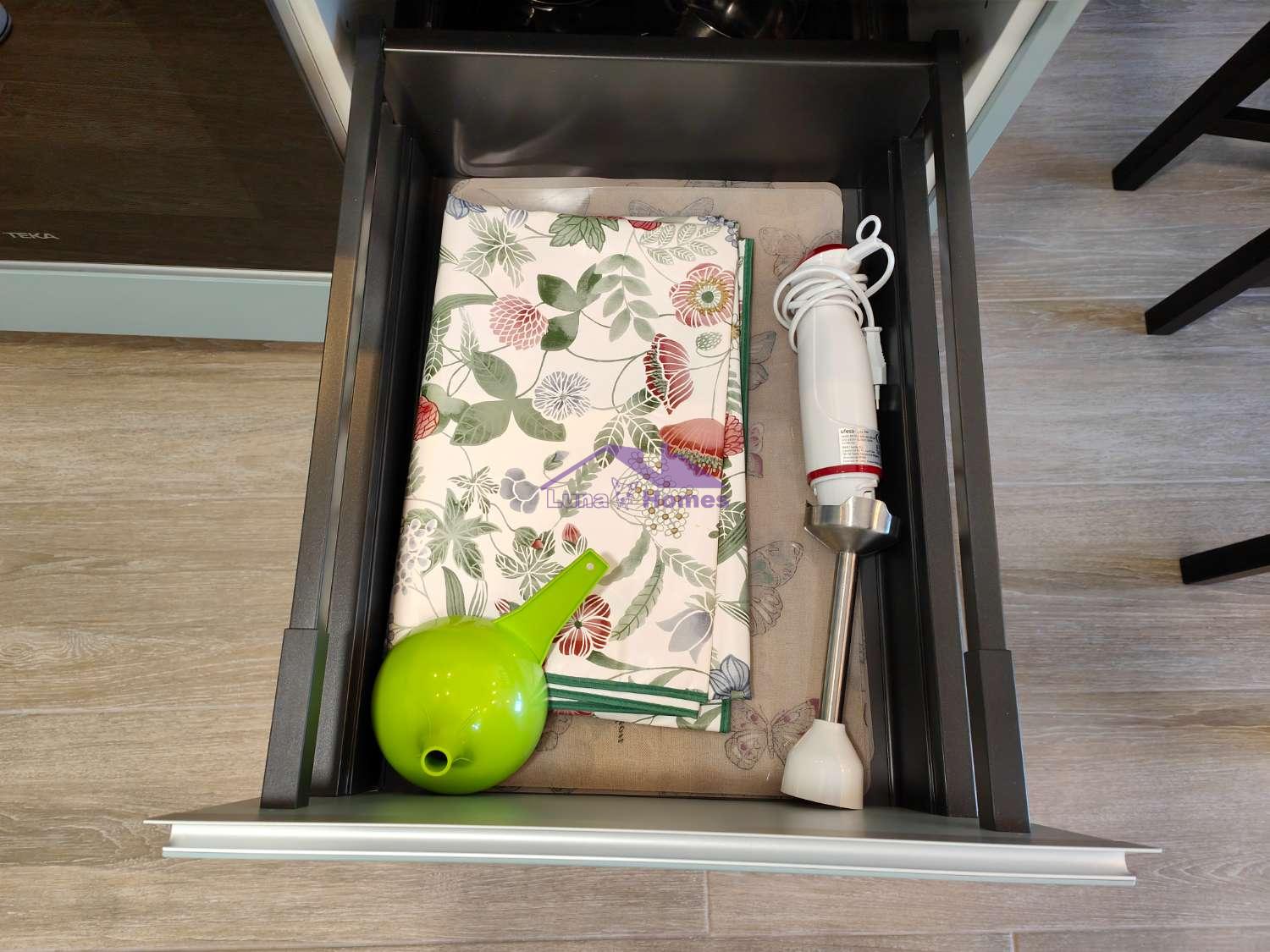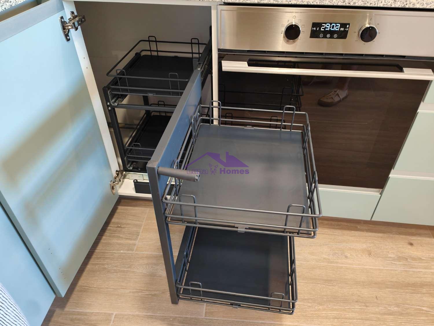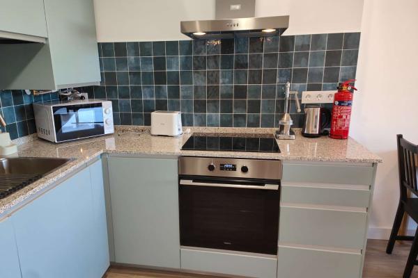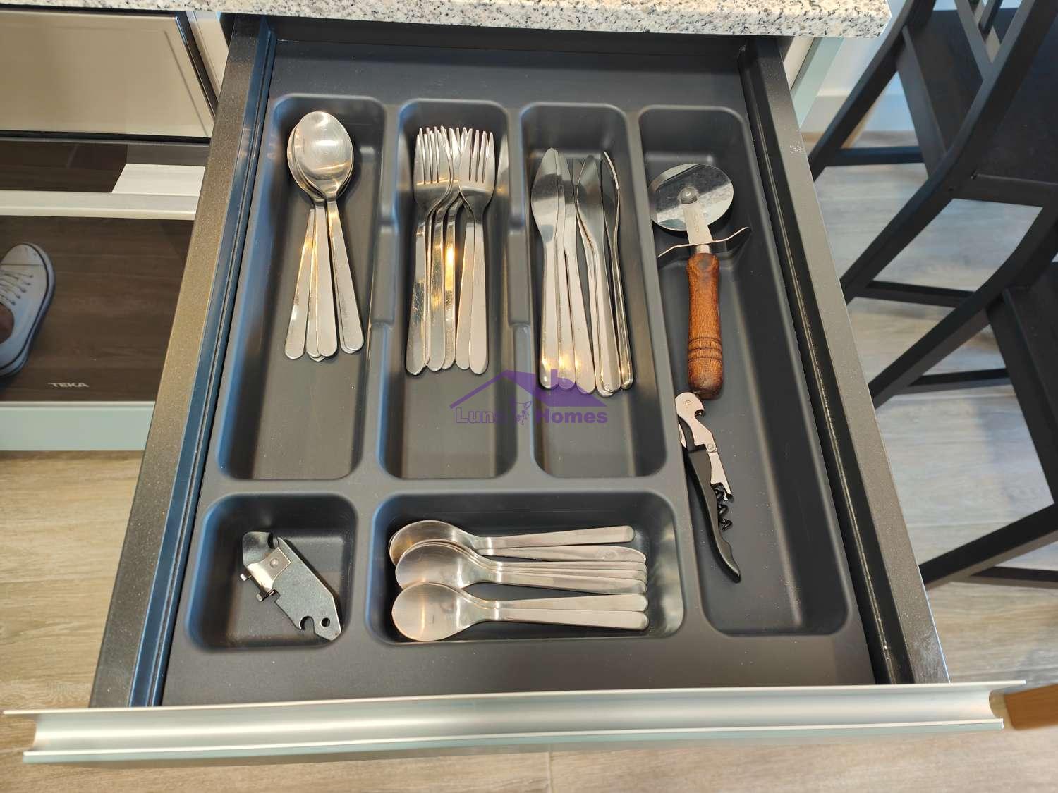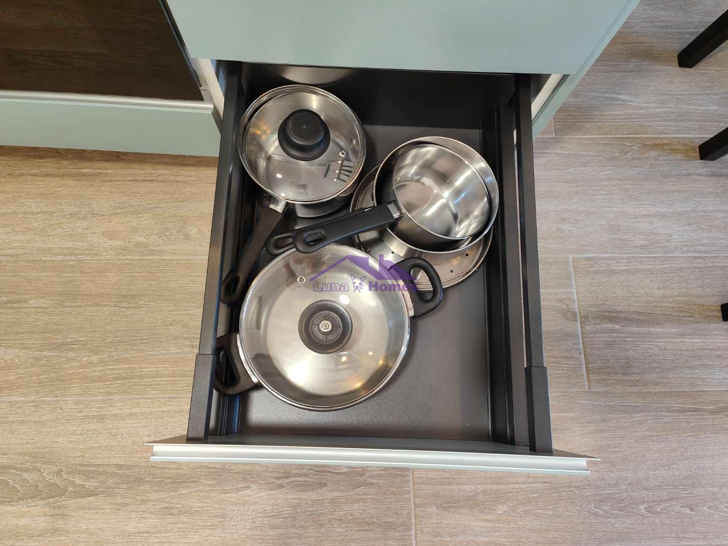 El apartamento de 1 dormitorio es un espacio acogedor y funcional que cuenta con una cómoda cama de matrimonio y una cama adicional de 90cm en la habitación. El salón comedor, integrado con una cocina americana totalmente equipada, ofrece un ambiente luminoso y moderno donde relajarse y disfrutar en compañía. El sofá cama brinda una opción adicional para alojar a dos huéspedes extra si es necesario.