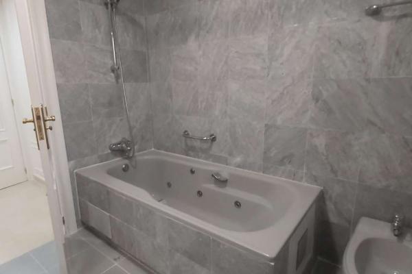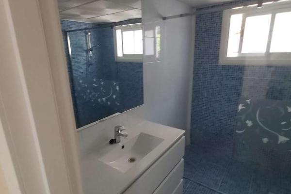 Dimensiones: 155 m² con 3 amplios dormitorios y 2 cuartos de baño completos (uno con azulejos grises elegantes y otro con un diseño fresco en tonos azules).